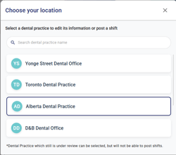 - Selecting a location before posting a shift